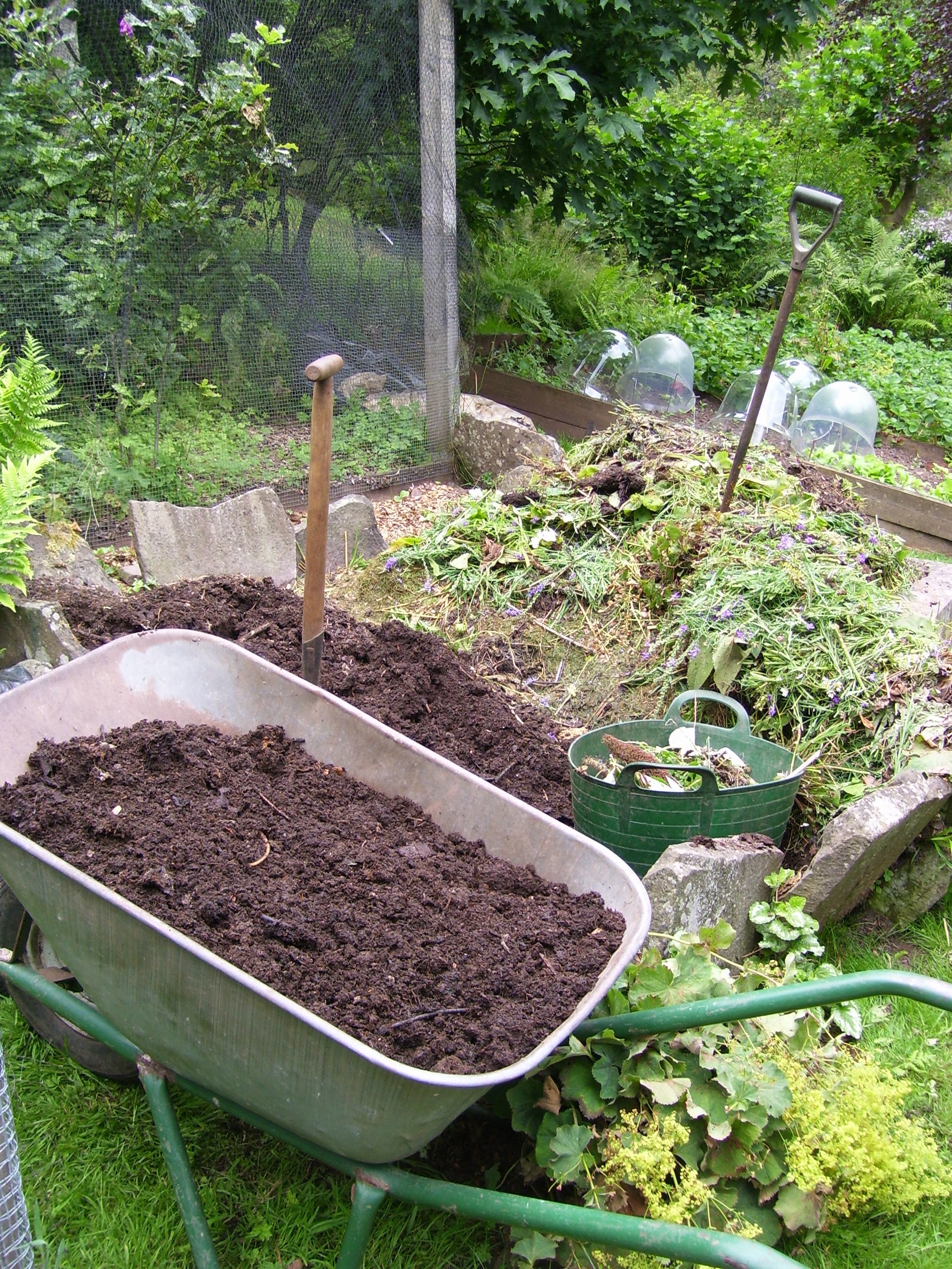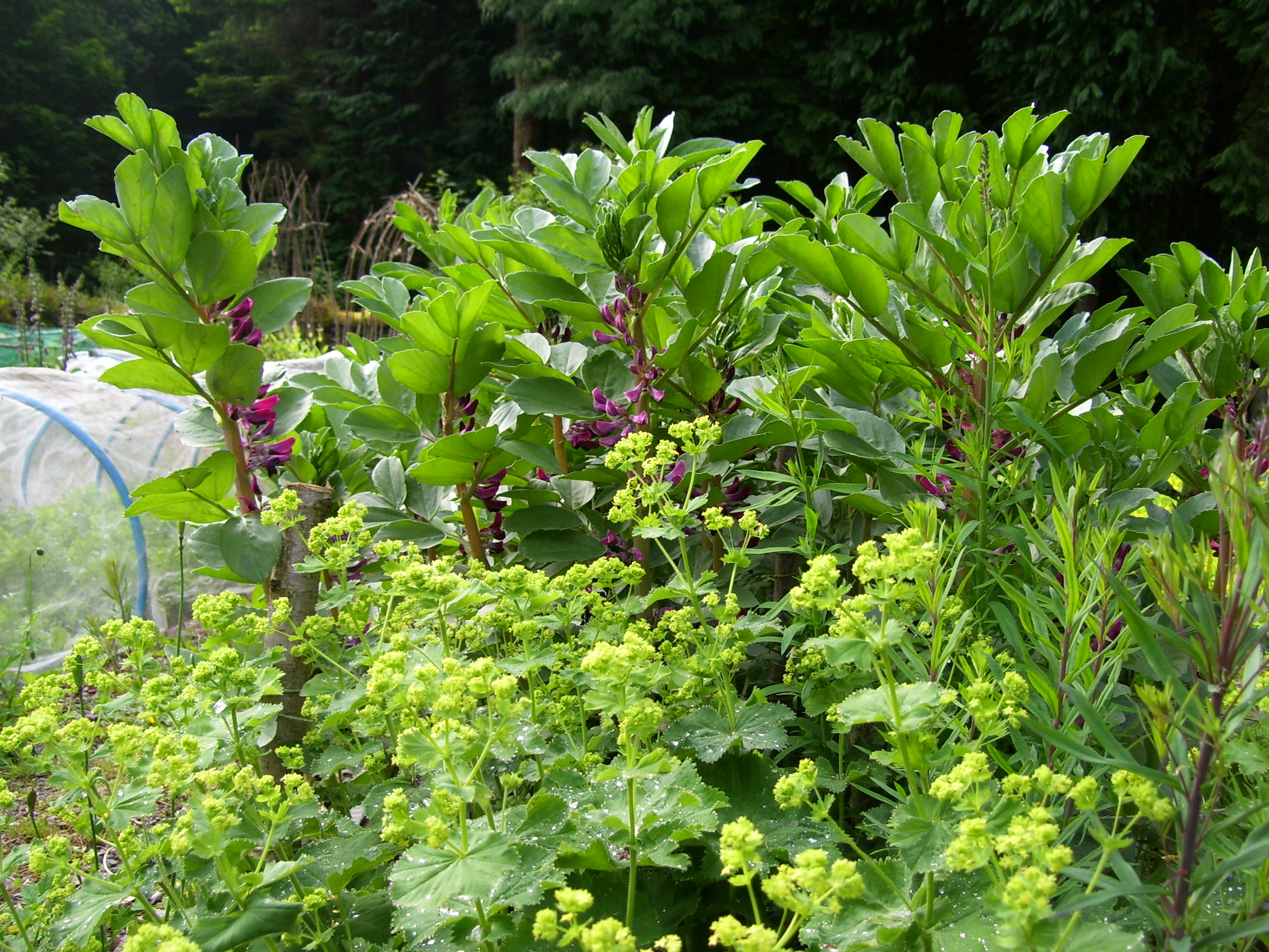 What ‘my kind of gardening’ is not is designed by others, manicured or low maintenance. What it is gives a lovely, fulfilling way of life which brings joy – and physical exercise. It’s self sufficient in lots of ways including use of local resources – for example wood chip, hazel and willow for weaving and pea sticks – and energy generation – micro hydro on the stream, woodland management for fuel for heating and cooking – and majors on recycling – for example re-use of copper for slug control.