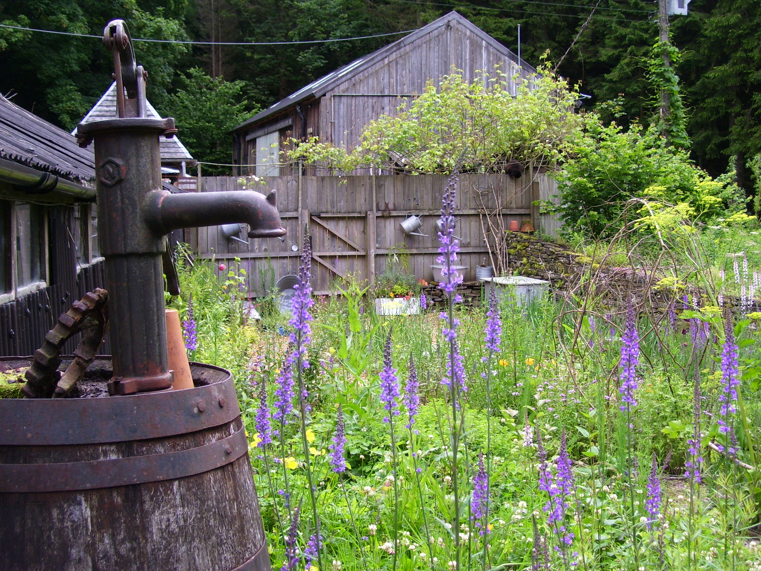 I have been gardening at Nant-y-Bedd for 34 years. We are at 1200 ft in the Black Mountains, sheltered in the valley, surrounded by mature mostly coniferous forest. Now six and a half acres of garden, meadow forest and river frontage. We have short growing seasons, temperatures generally 5 degrees below Abergavenny all year round, midges, slugs and moles. And no television. Sounds idyllic?