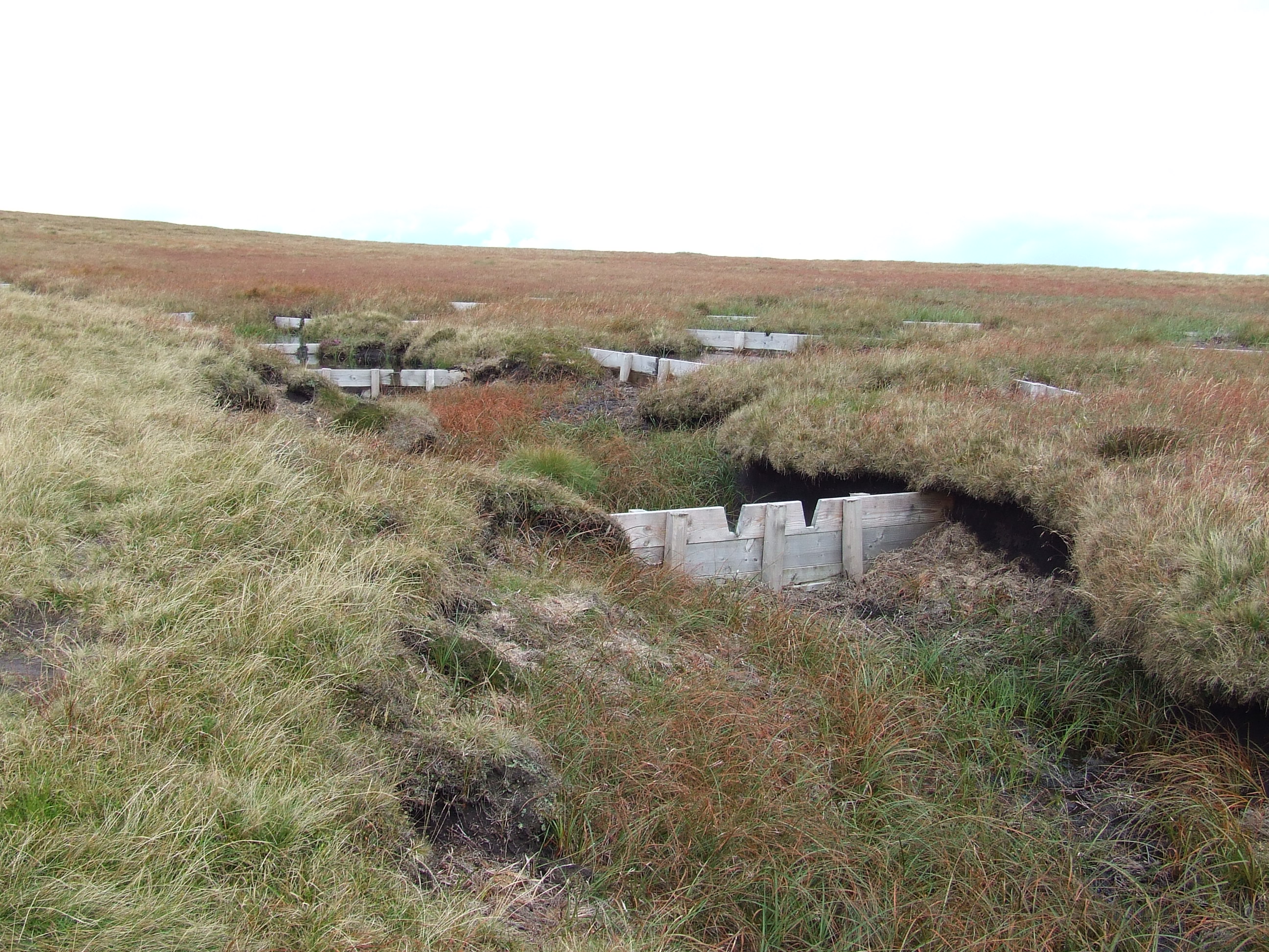 Work is also being done to prevent the water running off and washing the peat away. This involves a simple technique of blocking the ditches – see photo below