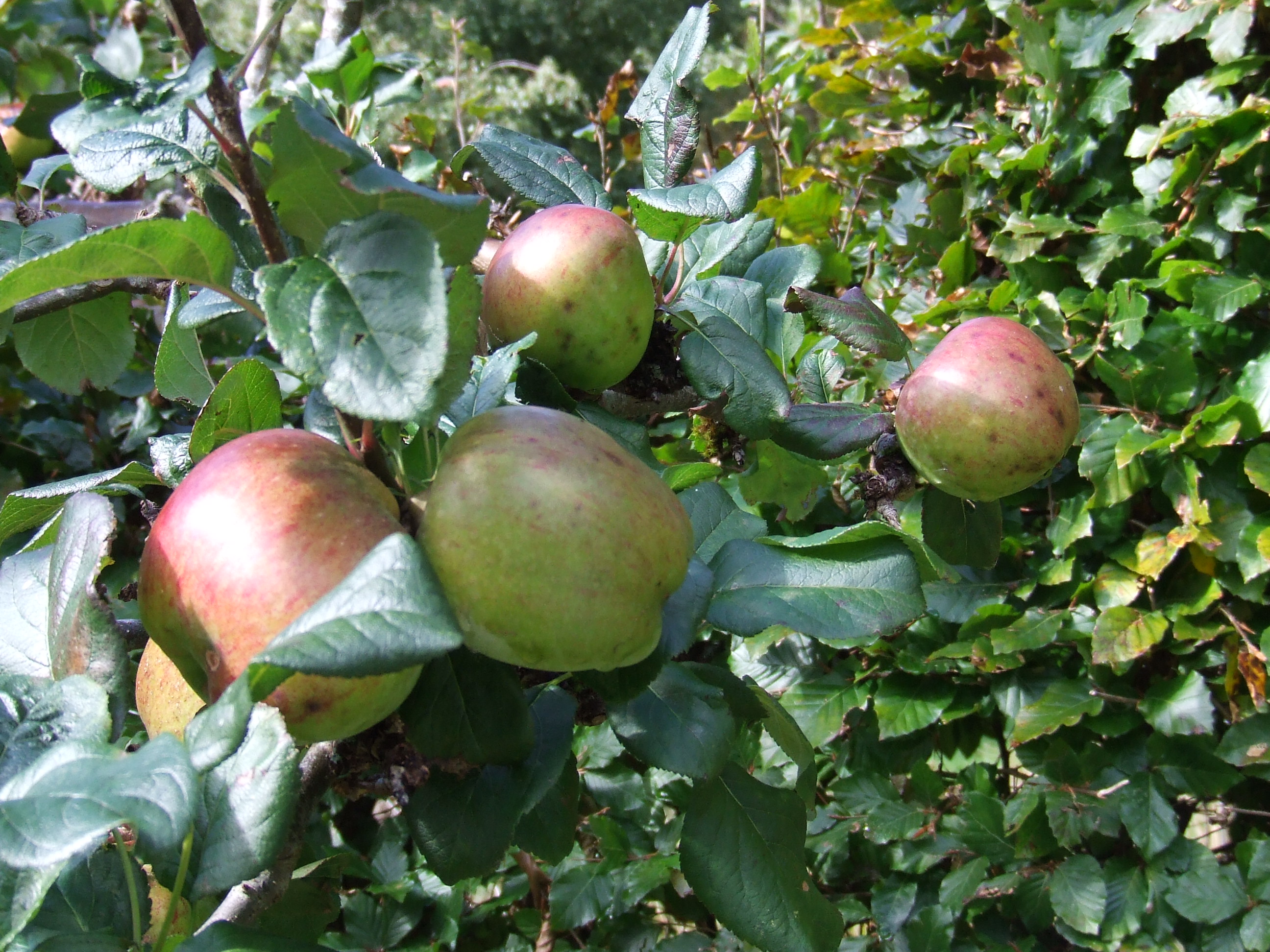 We also have two Howgate Wonders which suffer badly from canker, but one of them has a good handful or two of lovely fruit. Officially a cooker, they are equally tasty as a dessert apple.