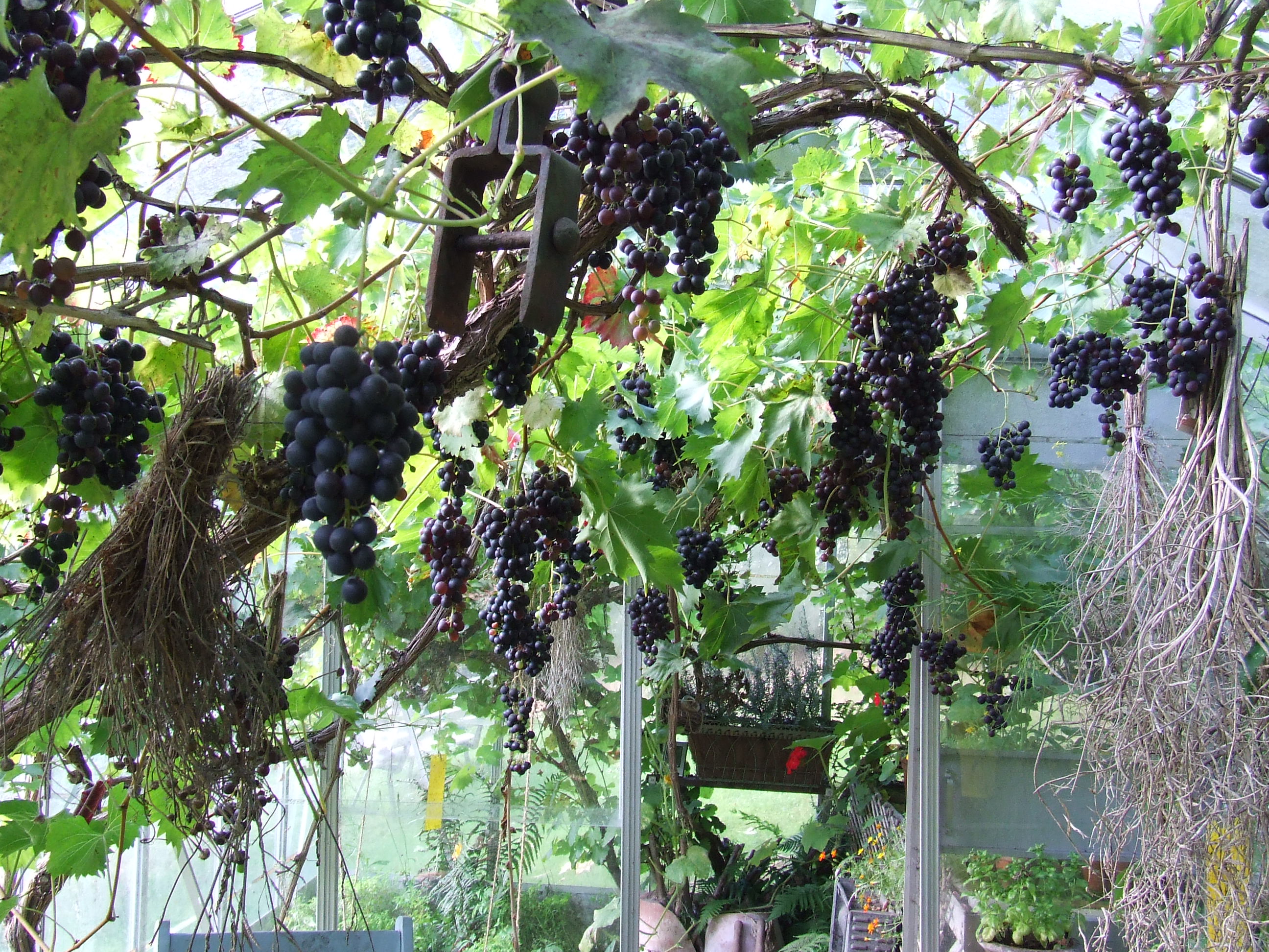 In the greenhouse the black grapes are almost ready to pick. Not really for eating, they’ll be vinified in the not too distant future. The white vine suffered scale bug a couple of years ago and may have to be replaced.