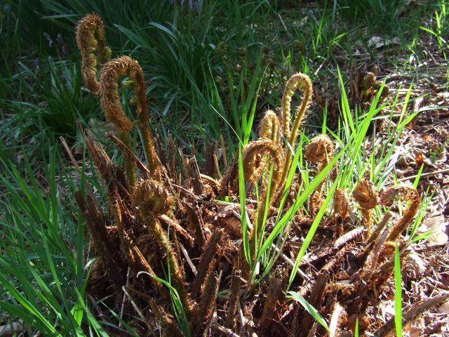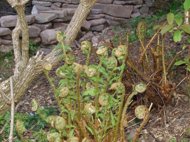I did a blog about ferns some years ago, but at this time of year they always look so spectacular as the fronds poke out from what looks like a dead lump of brown crud and slowly unfurl into the graceful leaves that persist for the rest of the year.