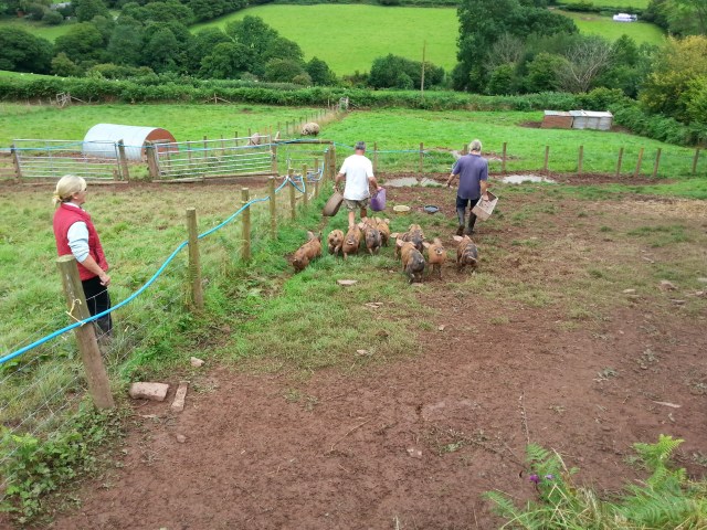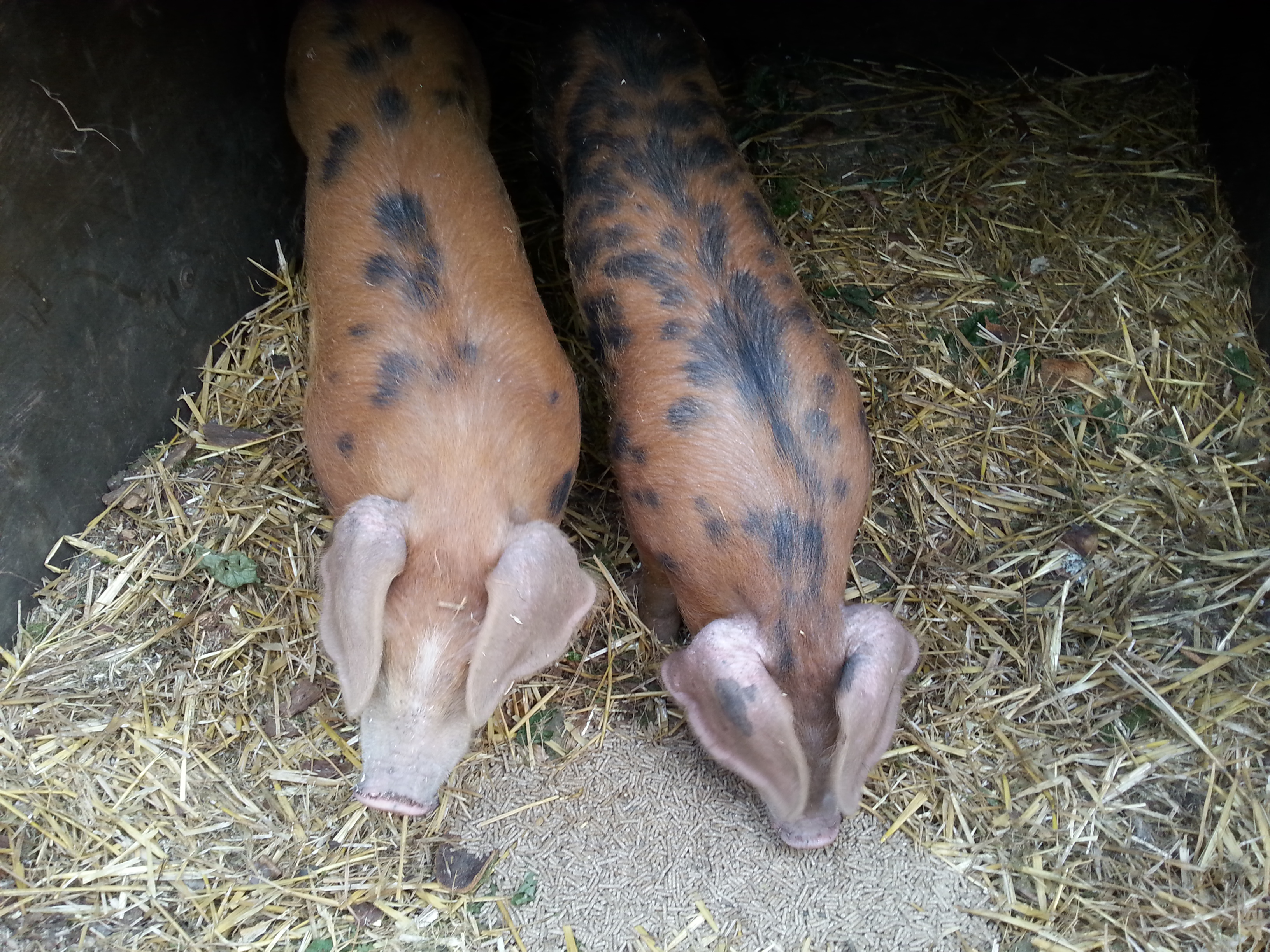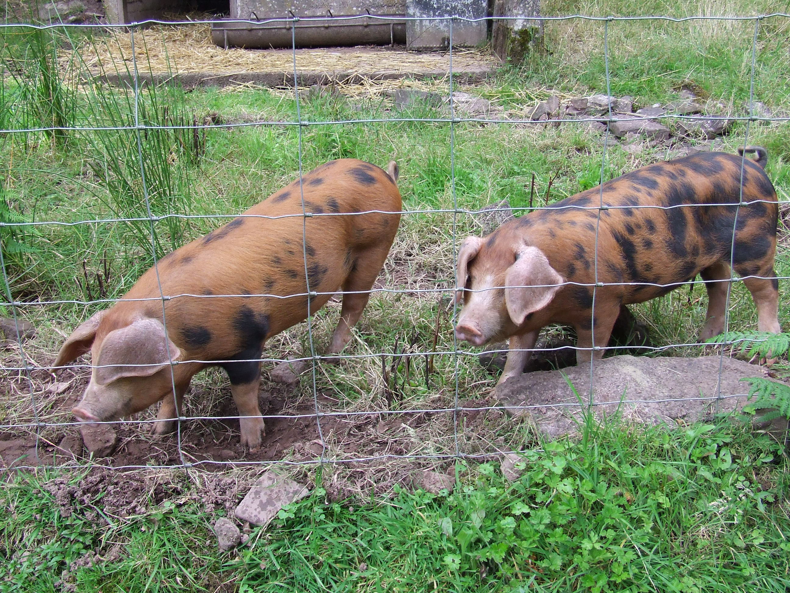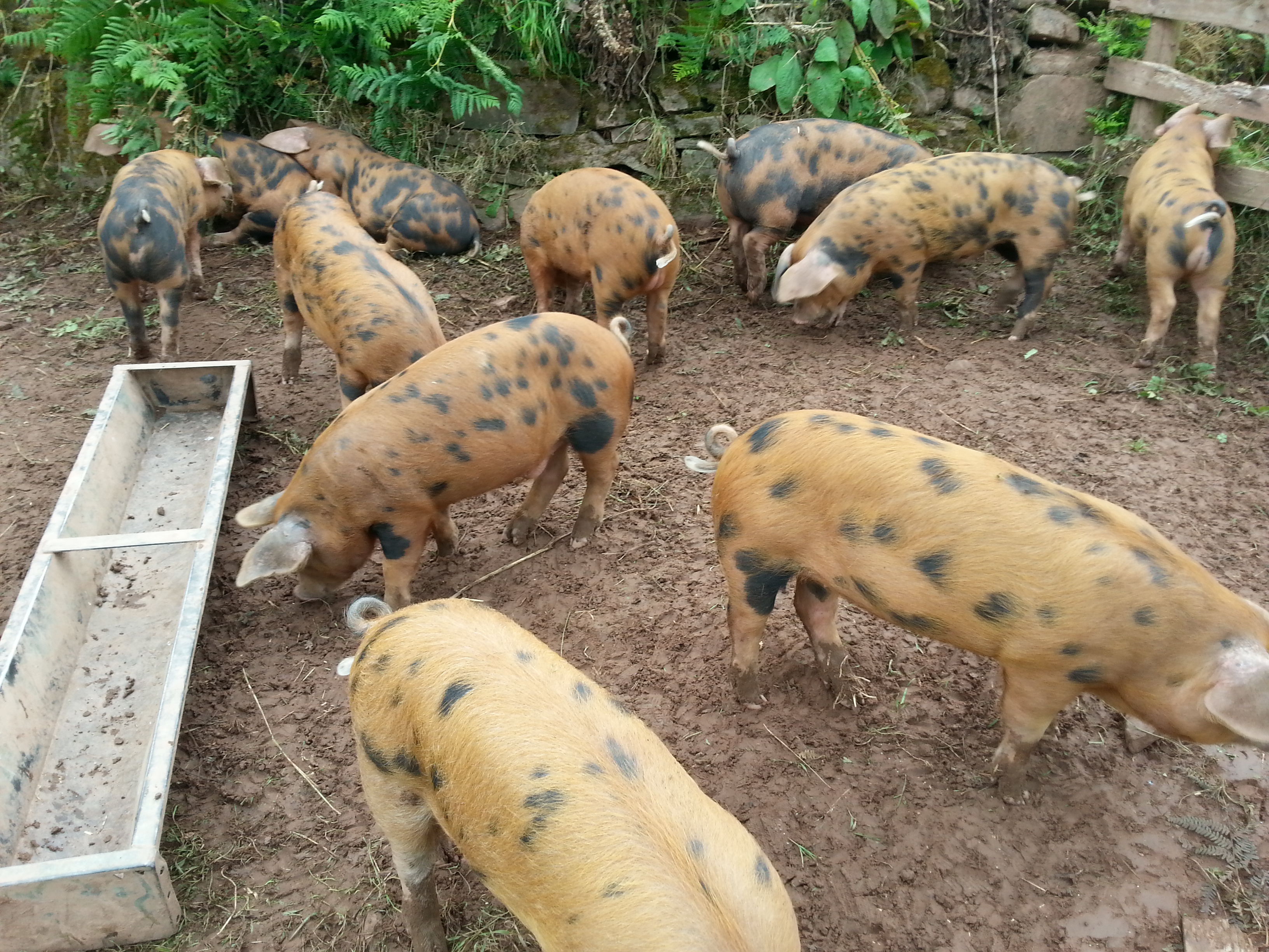 All that changed on Saturday. After a couple of failed attempts to buy some weaners locally and a somewhat hopeless try at getting some from the market (horrible white, runty things), we were put in touch with a small breeder near Llangynidr by one of our garden visitors – thanks Caroline and Jake from Longtown.