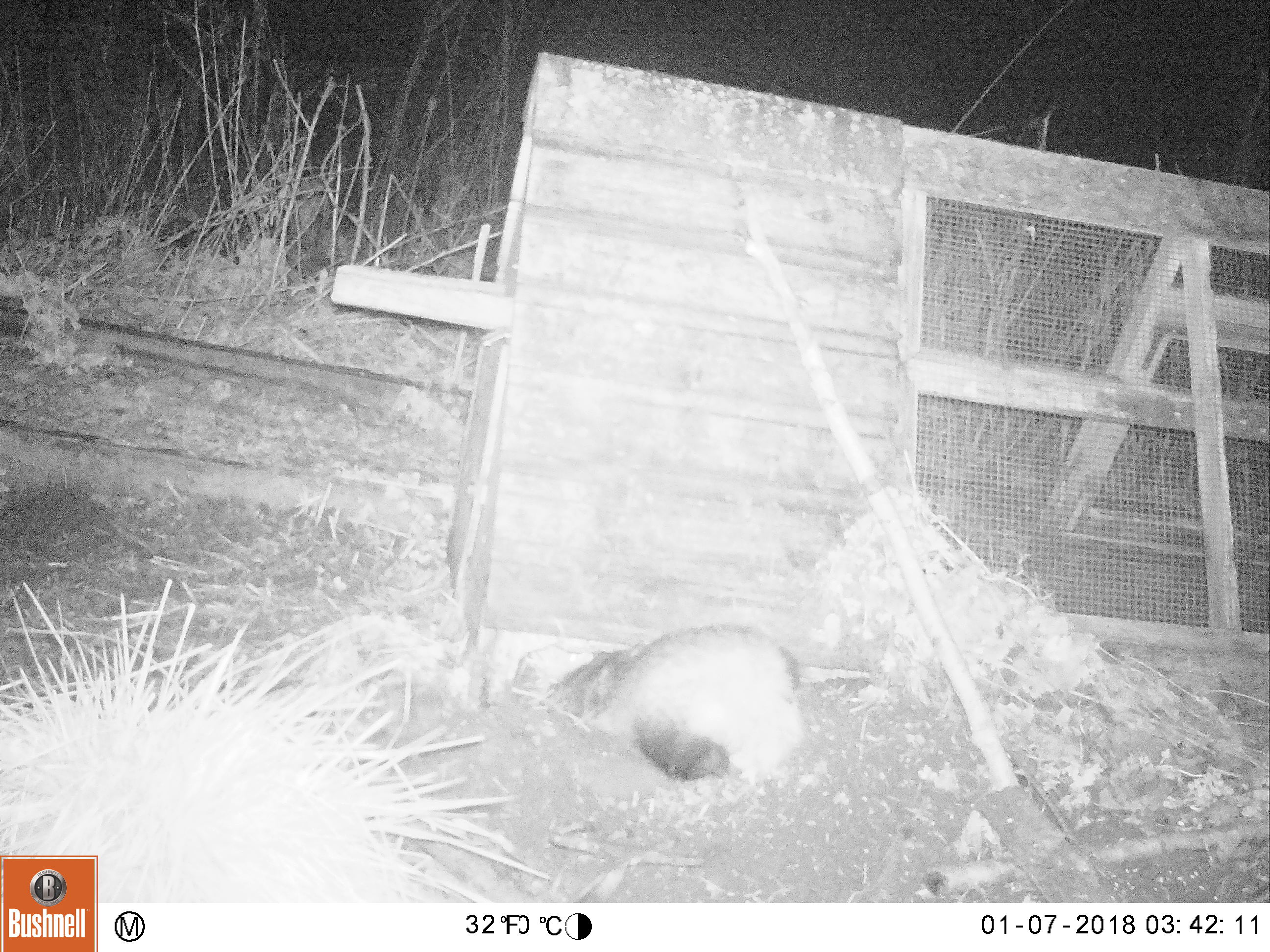 Over the past few nights there’s been a lot of ground disturbance around the duck house. So we dug out the night vision camera and here’s the result.