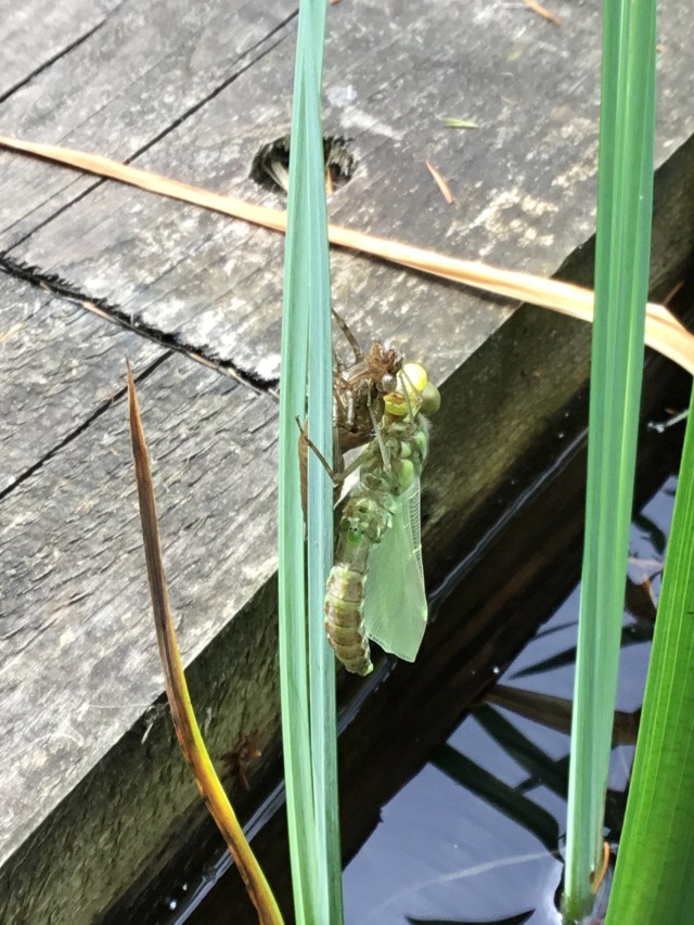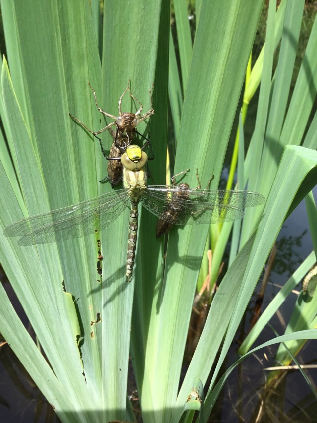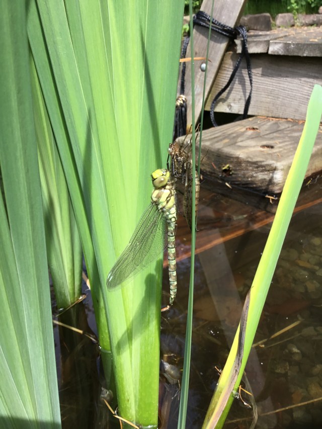 These early ones are Southern Hawkers. Later on we’ll get Gold Ringed and the magnificent Emperor, which ‘patrols’ around the pond, checking out who’s daring to swim in their territory!