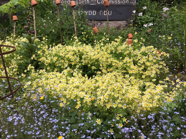 Self-seeded poached egg plants and forget-me-nots – useful winter ground cover and then masses of cheerful flowers for the bees in the Spring