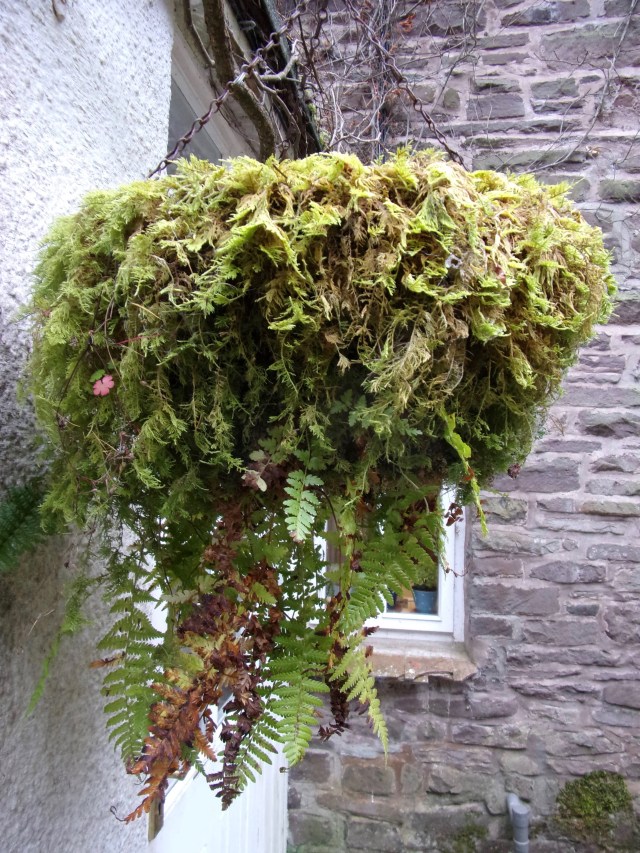 Iris reticulata in a ferny mossy hanging basket 6 foot off the ground in a shady spot – so we get to enjoy the ferns and mosses from the kitchen window over the winter and surely no badger could reach those?