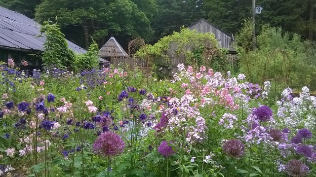 We don’t weed too enthusiastically here either, as visitors will know, especially at this time of year. Bare soils in the winter mean that nutrients get leached out of the soil by the winter rains. A covering of weeds is preferable in my view to bare soil. Self-seeding foxgloves, aquilegias’ and sweet rocket, for example, are left in the veg beds to be transplanted in the Spring to where we can enjoy them flowering.