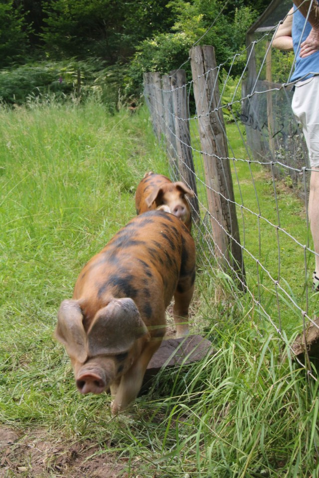 One of the first things that happened in July was the arrival of this year’s two piggies. Oxford Sandy & Blacks again from Sarah and Ian in Llangynidr. We had a male and a female this year as the second male we wanted proved too difficult to catch! It worked out OK and our first visitors after they arrived named them, rather topically, as Harry and Meghan!! (I haven’t dared put this in writing until now in case I got hauled off to the Tower!)