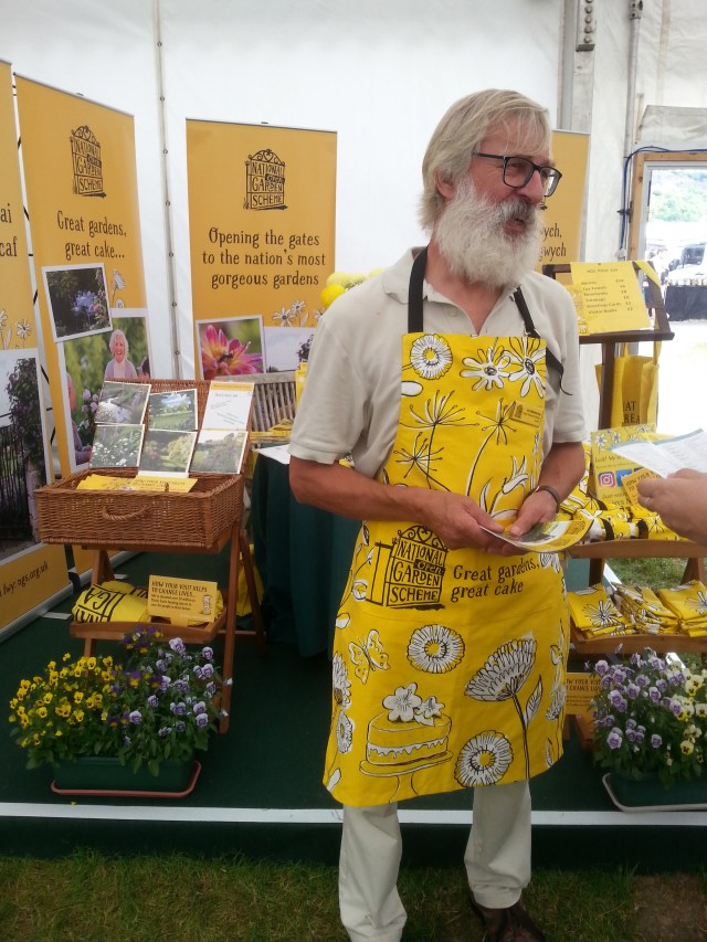 As the sun continued to shine we hosted our NGS Open weekend. Numbers were down on last year, but this appeared to be a nationwide problem. Apparently it was too hot to go out! Talking of the NGS, at the end of the month we helped out at the Royal Welsh for them – hope you like the pinny!