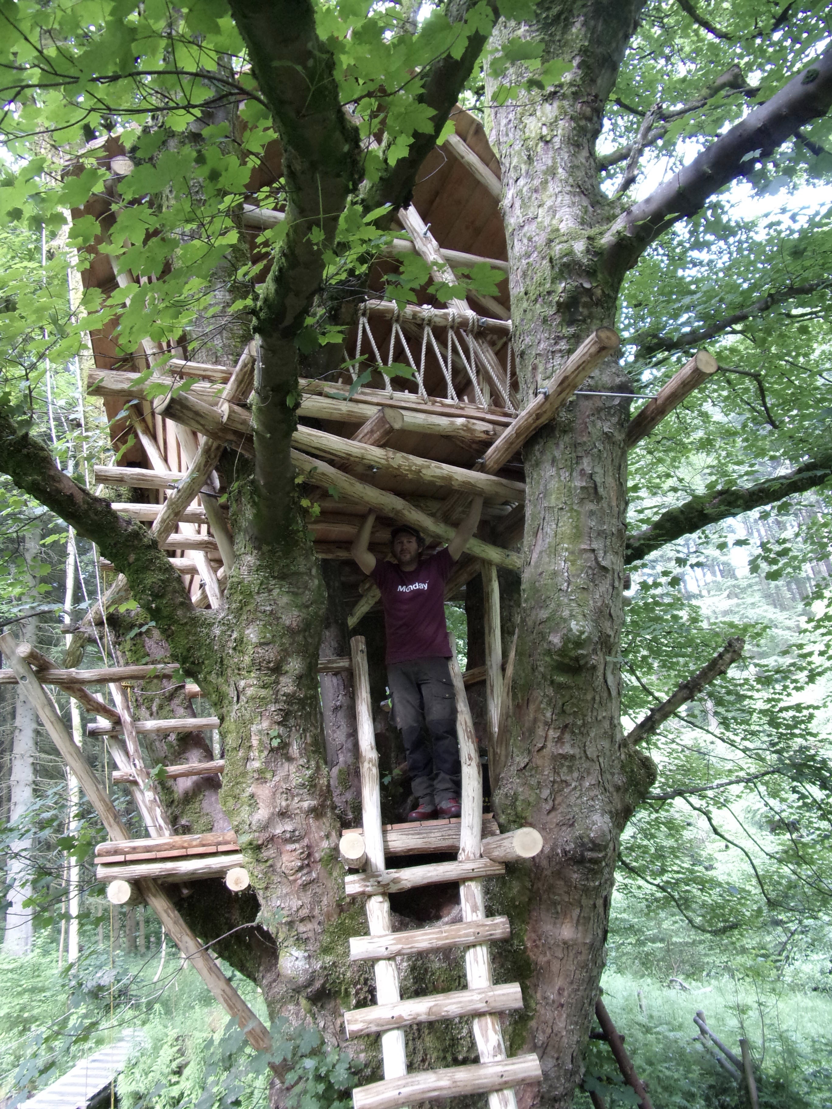 A big Well Done to Mick for his design ideas, to Dan for making them reality, to Oli for hanging around (literally) in the treetops in sun and rain and of course to Sue for having the original vision. Me? I just got in the way and made useless suggestions!