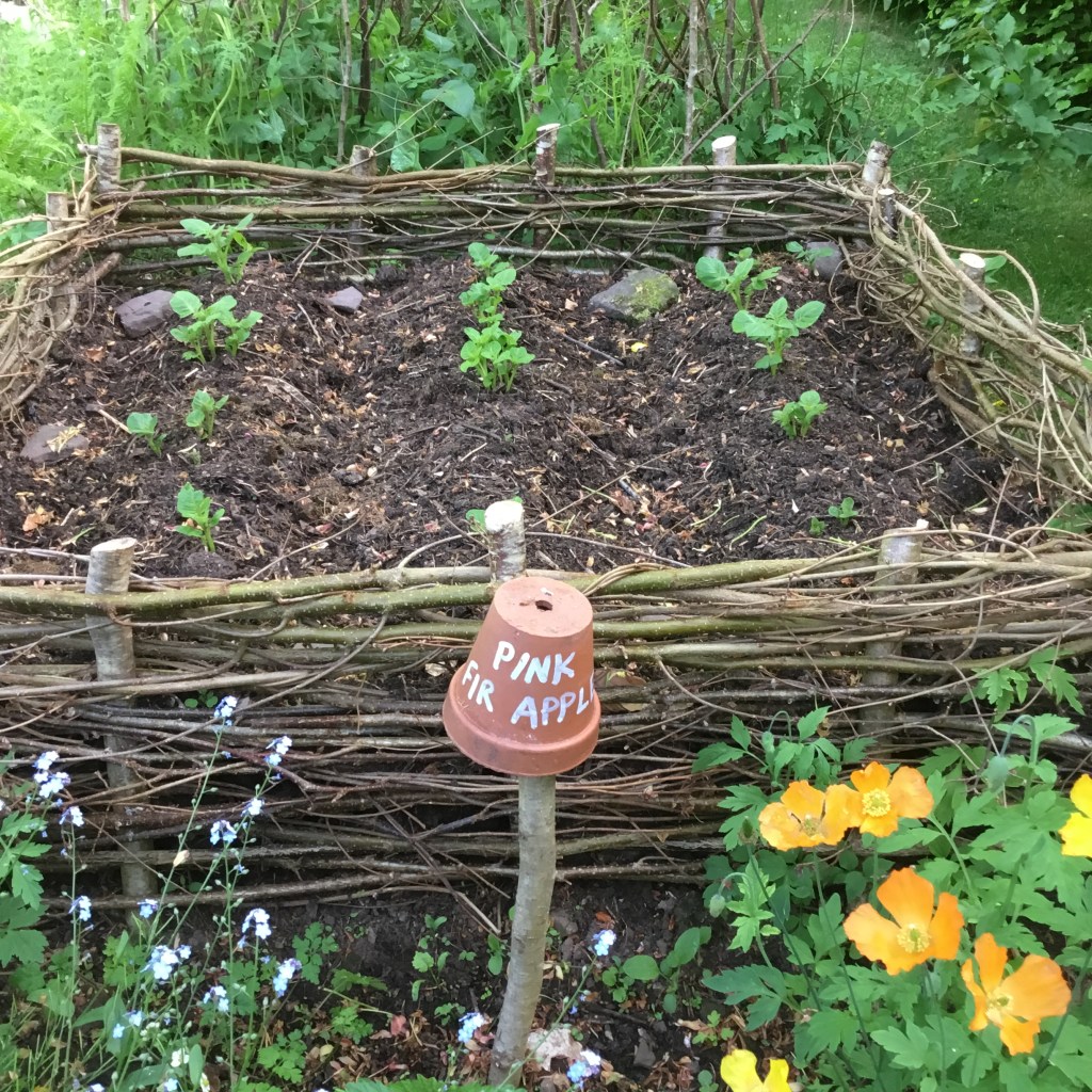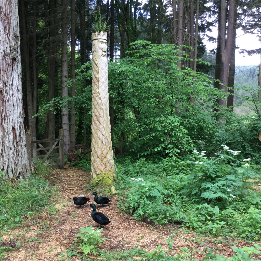 Venturing through the runner bean tunnel, we come to our tree carving Cedric, who symbolises our approach to editing nature, not dominating it.