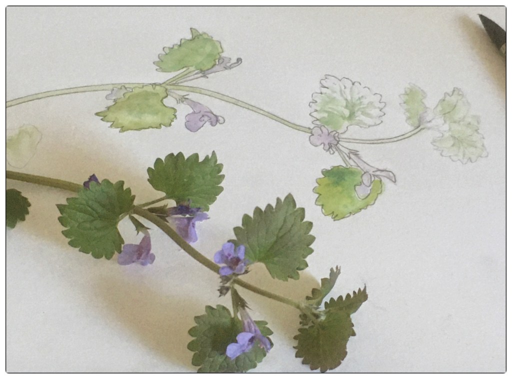 We will then spend some time closely observing a variety of common weed species before attempting a series of pencil studies and sketches and discussion on how to start a more accurate botanical illustration depending on the level of participants. There will also be the opportunity to try out leaf rubbing and leaf printing processes where appropriate and as confidence increases attempt some simple line drawings with inks and white pen on black paper, plus some gentle watercolour washes. The day will include warm up exercises, tips on mark making in each medium, and ways of capturing the essence of each plant in quick sketches suitable for nature journaling.