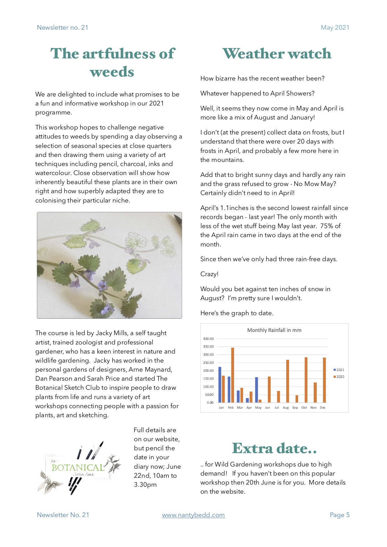 If you’d like to be on the list and ‘in the know’ send us your e-mail details to garden@nantybedd.com.