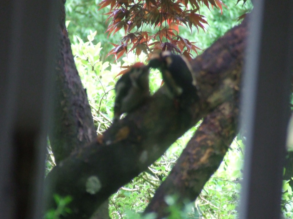 On the peanut feeder – and giving the red Acer a good pecking – are the Greater Spotted Woodpeckers, with Mum and Dad often helping the youngster(s) to a nut or two. Terrible photo, but I was sitting at the kitchen table on a Zoom meeting when I saw them, so very snatched and no second chance as they realised I was there and scarpered!