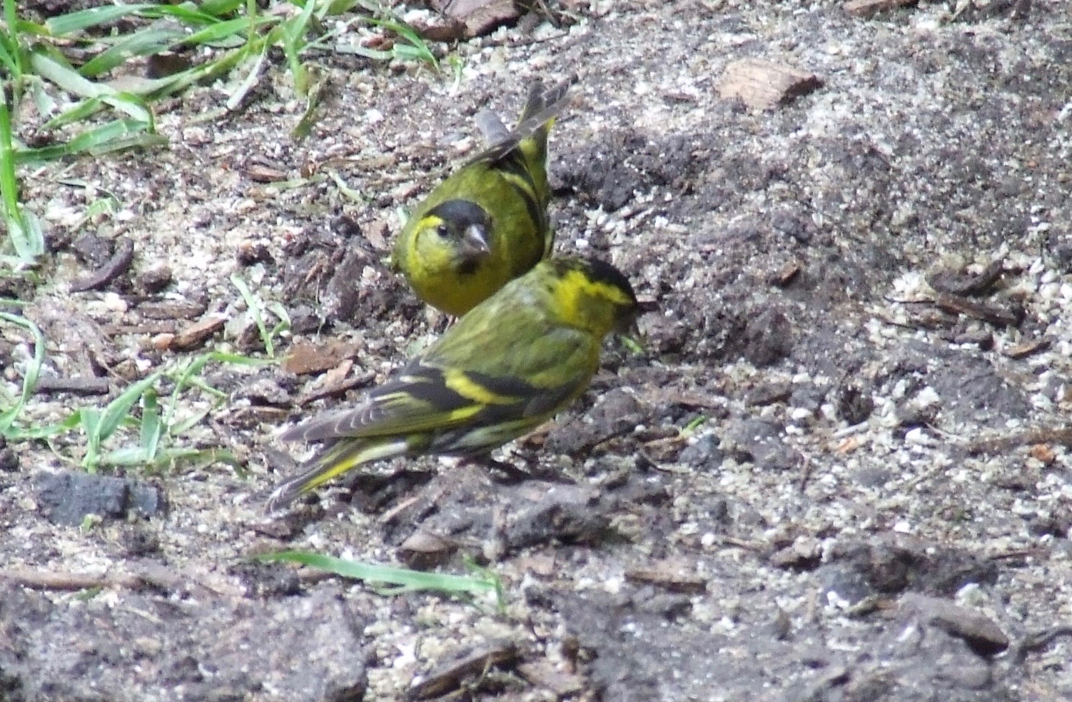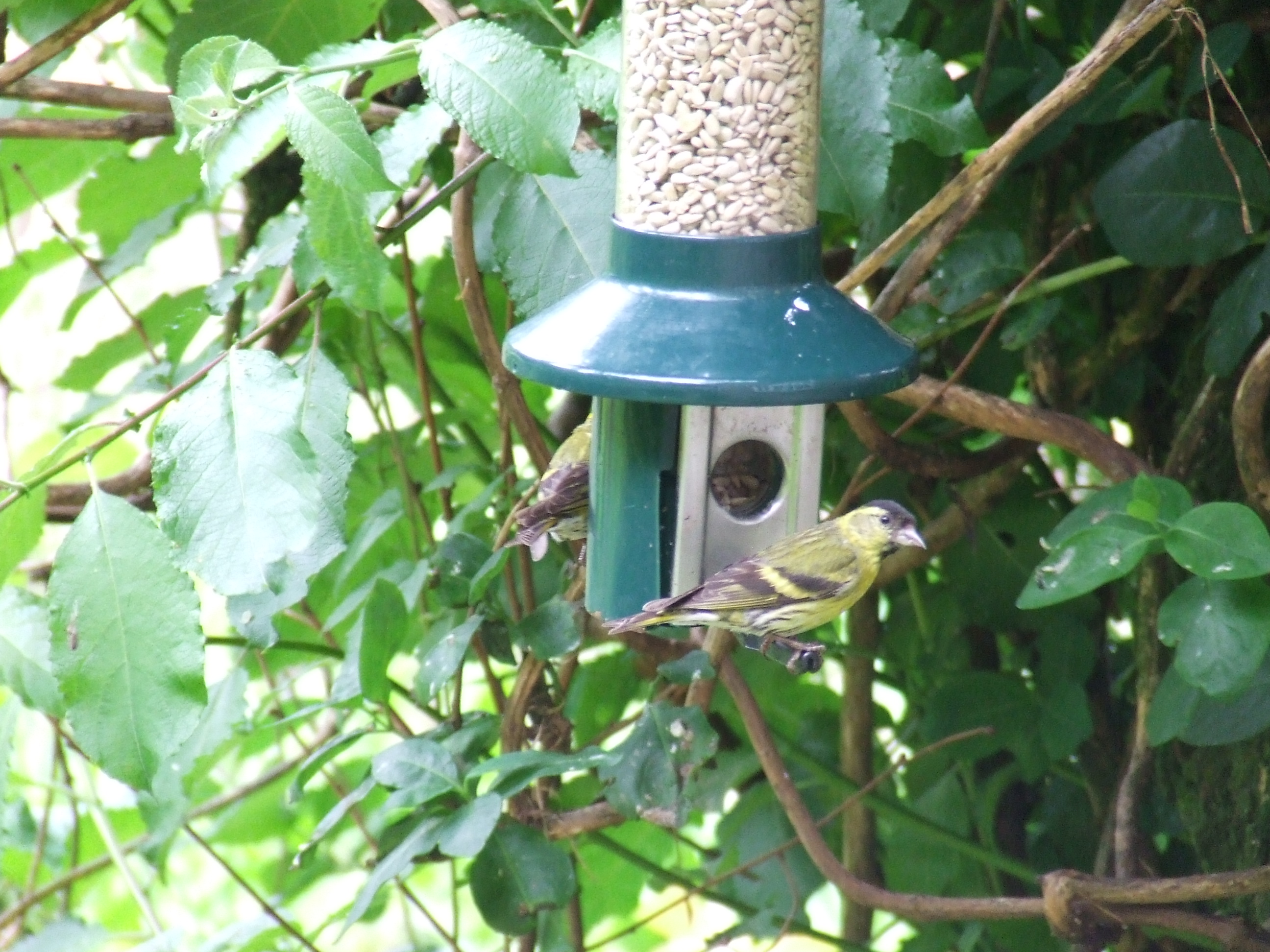 The sunflower seed feeder is crammed with lovely yellow Siskins, some patiently waiting their turn on the power cable above the feeder, others, frantically trying to get a dropped morsel before someone else snaffles it. Lots of our visitors have never seen a Siskin, so they are a great delight to them.