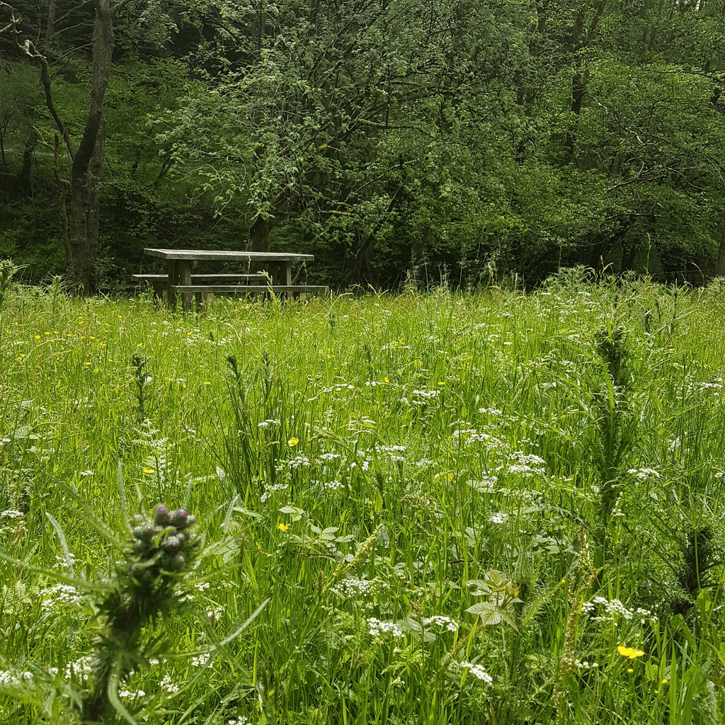 The next one shows the picnic meadow next to the river where the management is specifically to improve the biodiversity. Here showing pignut, thistles, meadow buttercup, sorrel.