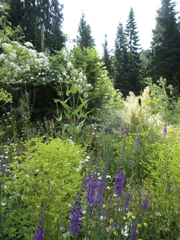 And the next…ground elder (yes, really) flowering in the Cottage Garden with Lysimachia ‘Firecracker’, oriental poppies, allium Purple sensation,