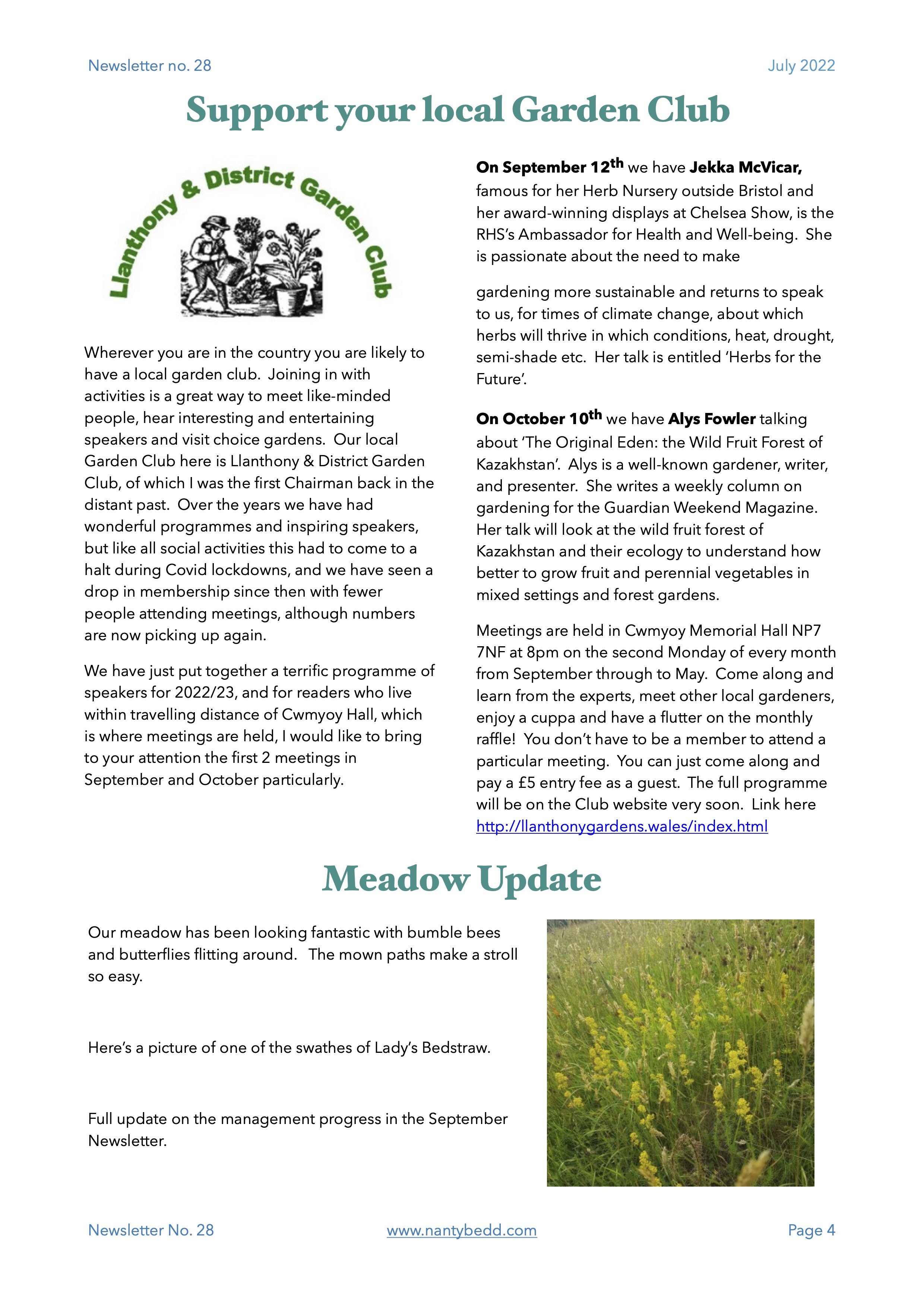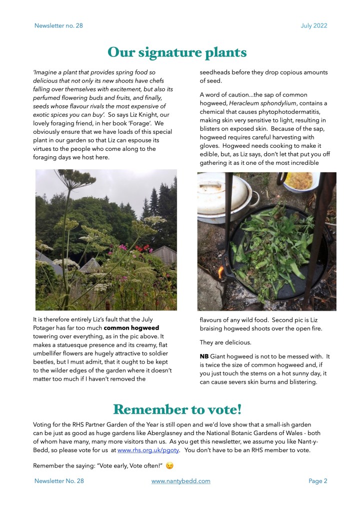If you’d like to be on the list and ‘in the know’ send us your e-mail details to garden@nantybedd.com.