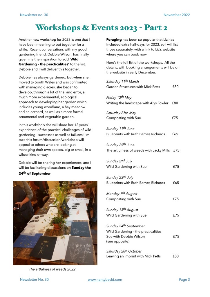 Don’t forget you can have these Newsletters direct to your inbox (via Mailchimp) just by dropping us an e-mail on garden@nantybedd.com