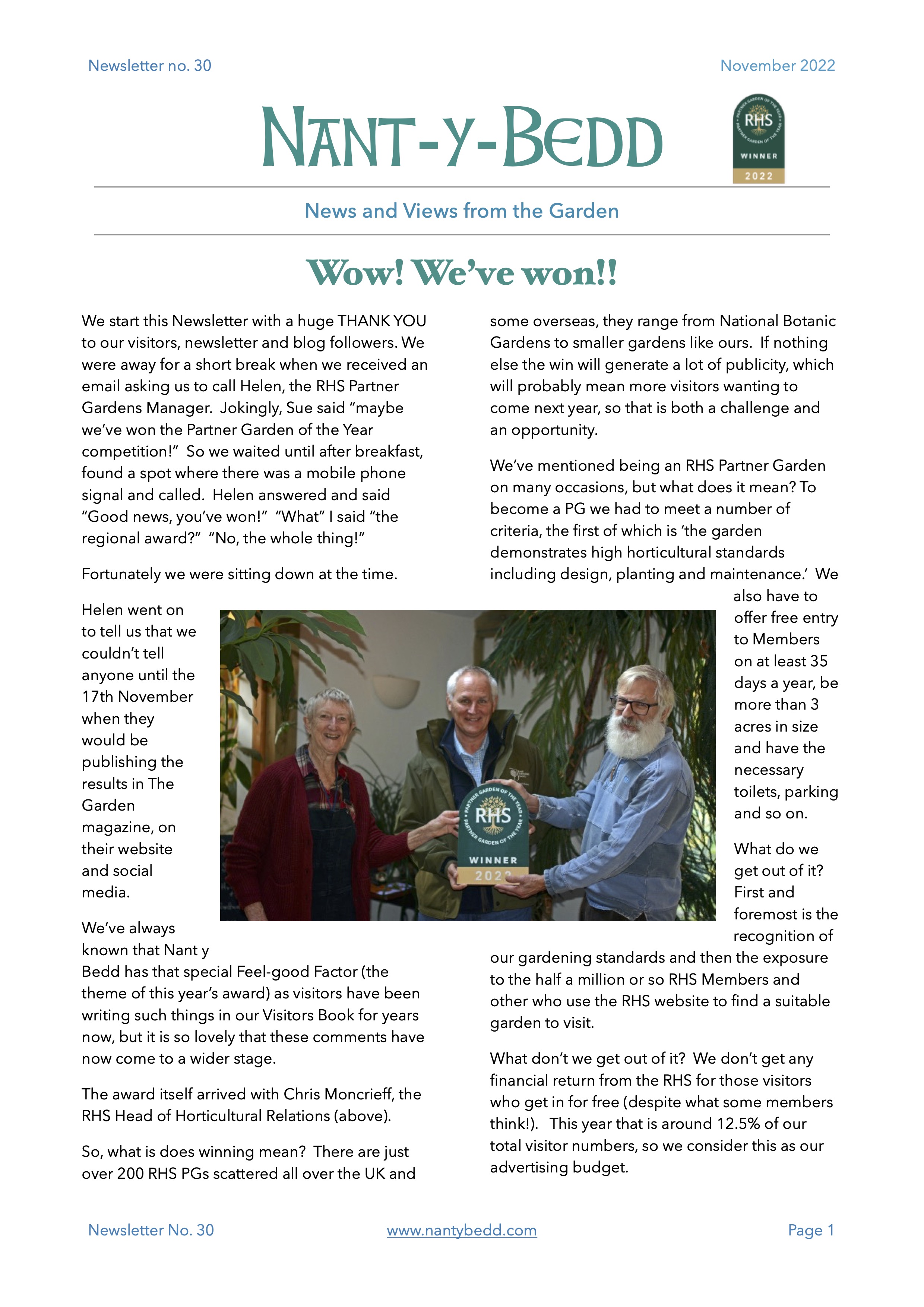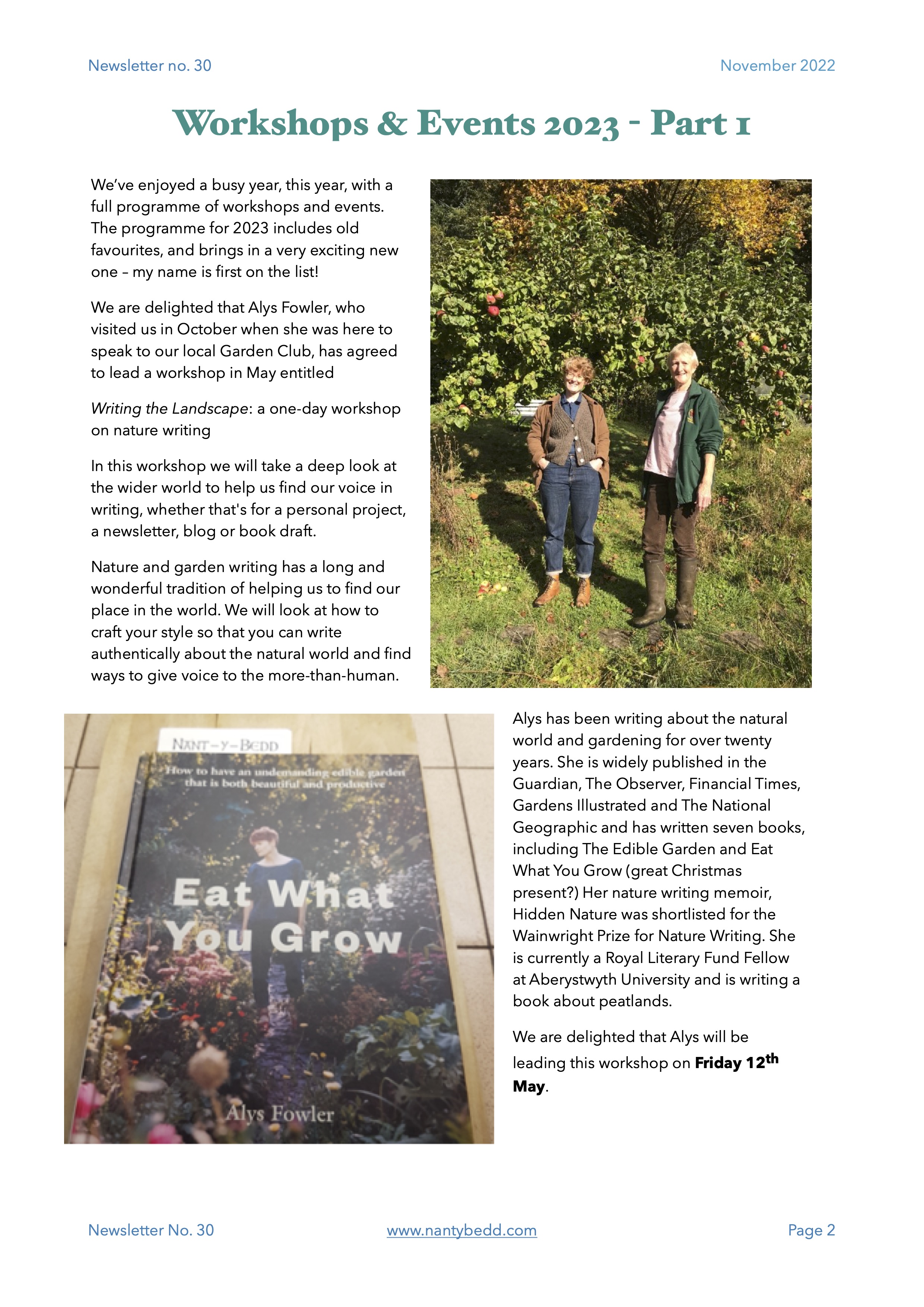 Don’t forget you can have these Newsletters direct to your inbox (via Mailchimp) just by dropping us an e-mail on garden@nantybedd.com
