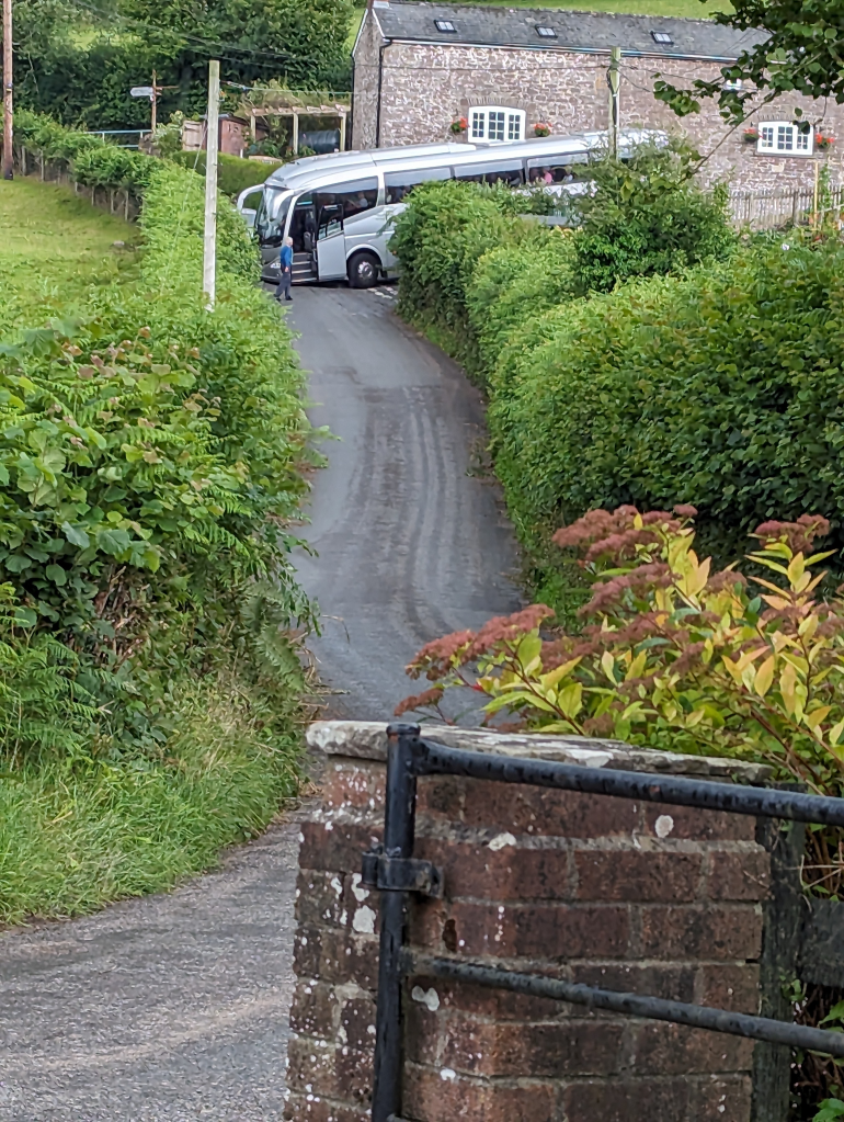 This is what happens if your coach driver doesn’t check out the route to Nant y Bedd before he sets off.