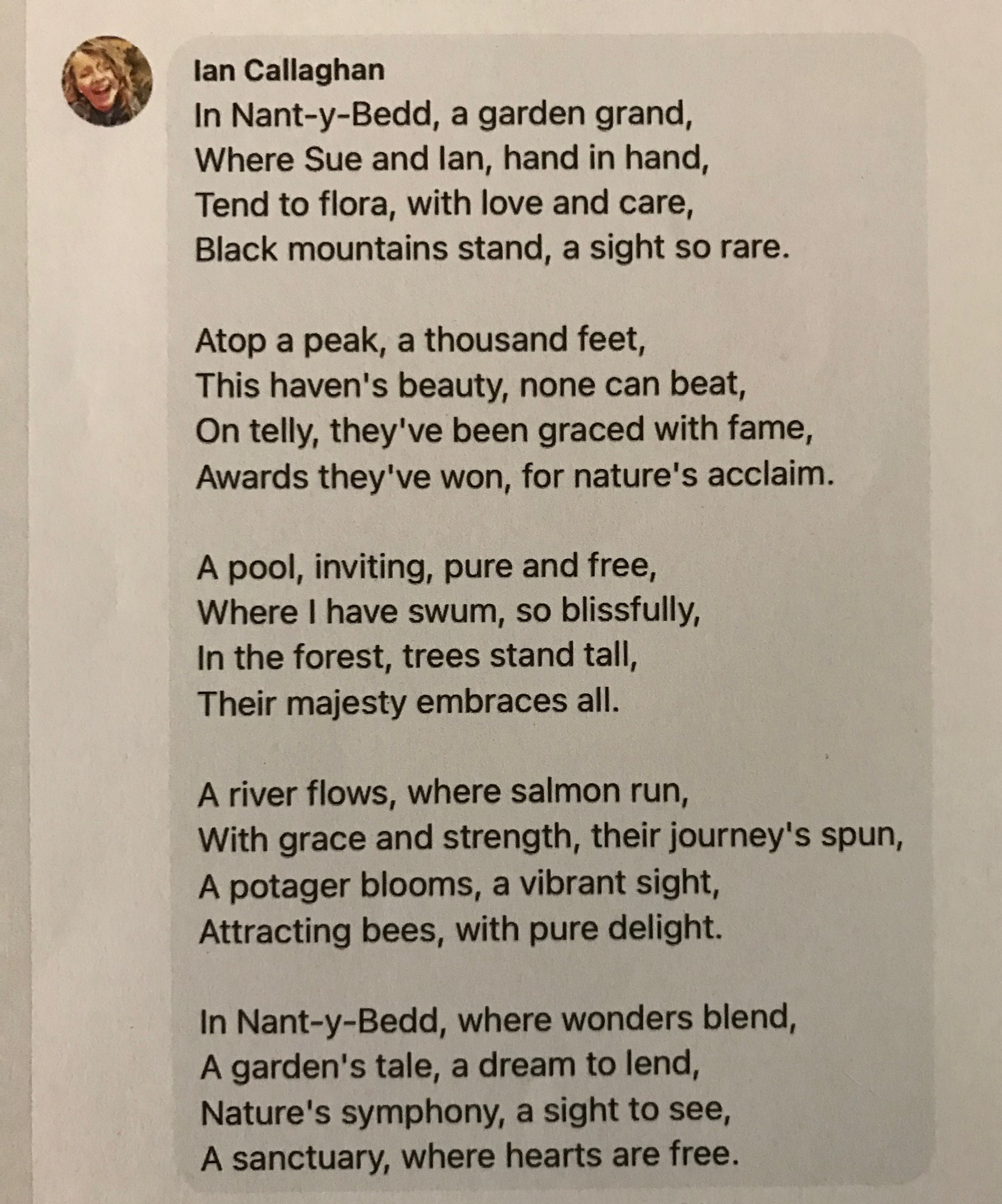 Many thanks to our friend, wild swimmer, chef extraordinaire Ian Callaghan for this poem he sent via Facebook.