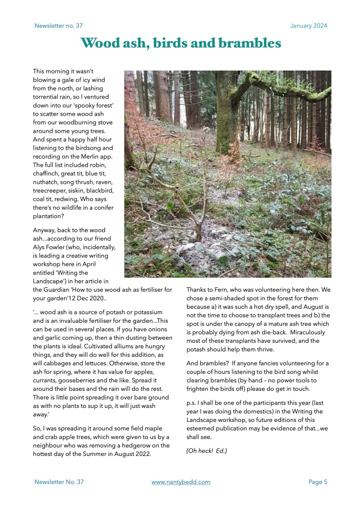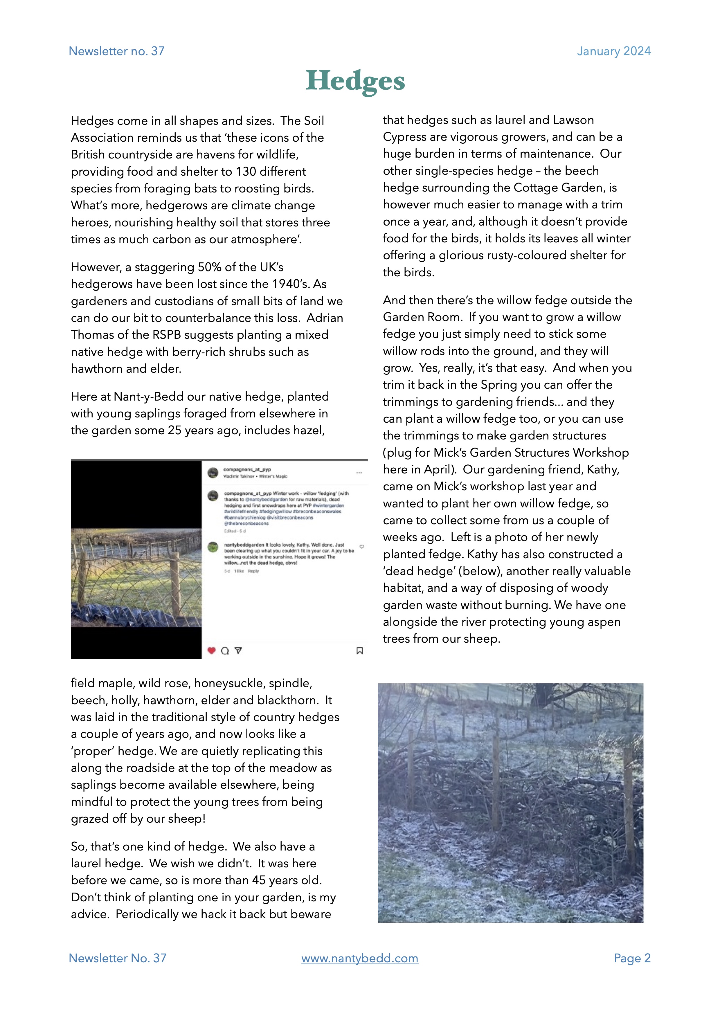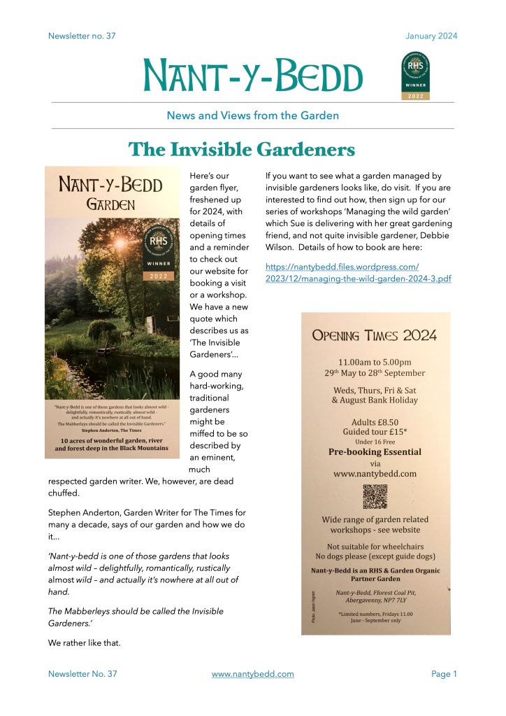 Anyway here is the January Newsletter. Don’t forget that you can get it straight to your inbox every oter month by dropping us a line to garden@nantybedd.com.