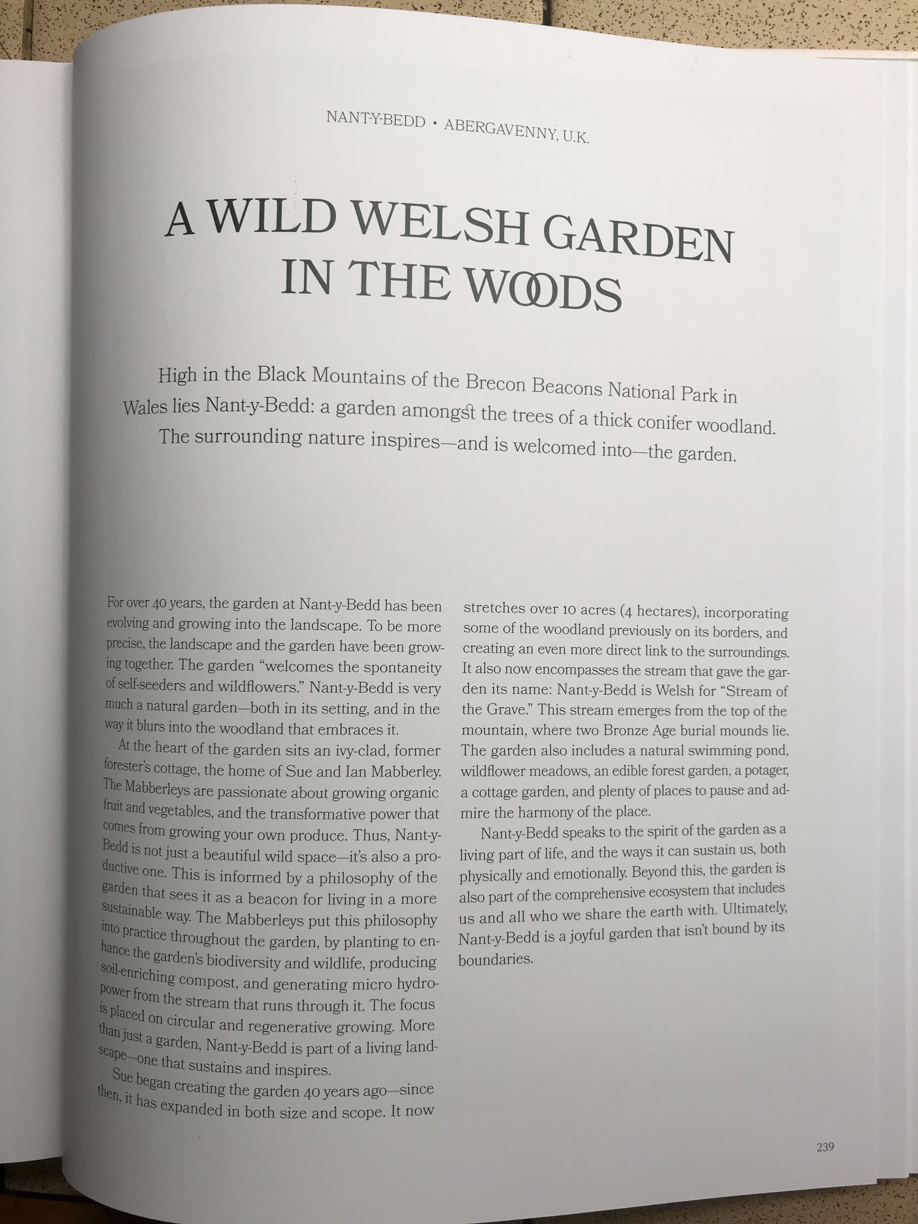There are 27 gardens featured and they include such well-known places as Great Dixter, Sissinghurst, Beth Chatto’s Garden, Gravetye Manor, Knepp, The Tokachi Millenium Forest and Hummelo (OK, I hadn’t heard of that one, but apparently it is famous worldwide due to Piet Oudolf!). Not bad company for a little place halfway up a Welsh mountain.